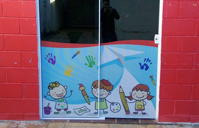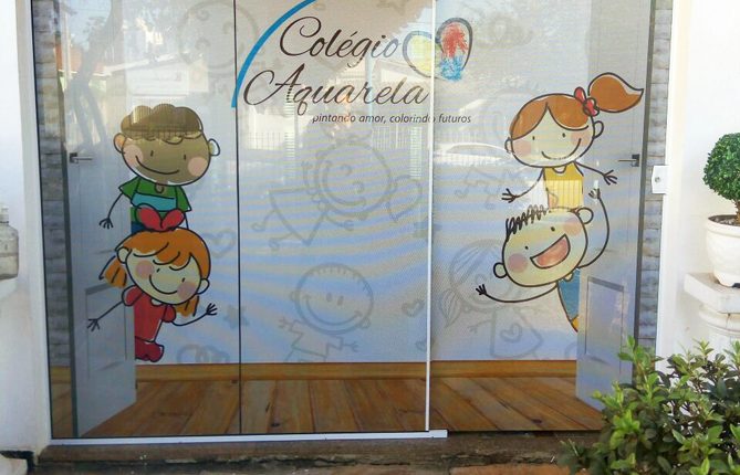 Adesivo Perfurado Porta – Colégio Aquarela