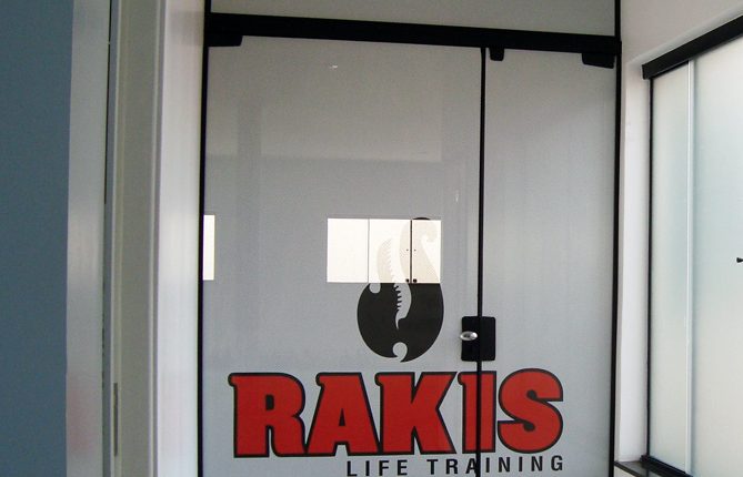 Porta de Vidro adesivada até a Fechadura